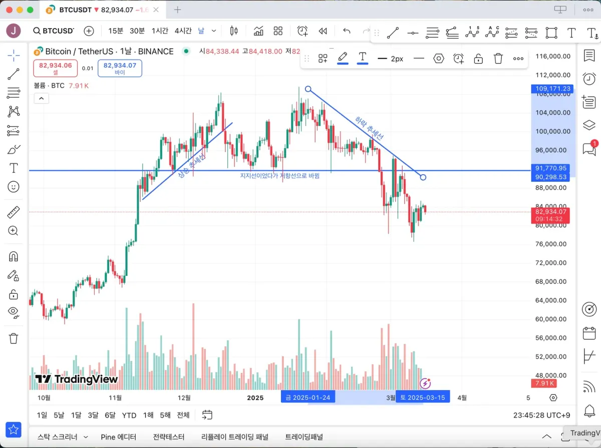 [30일 챌린지 19기 1주차] 지지선, 저항선, 추세선 작도
