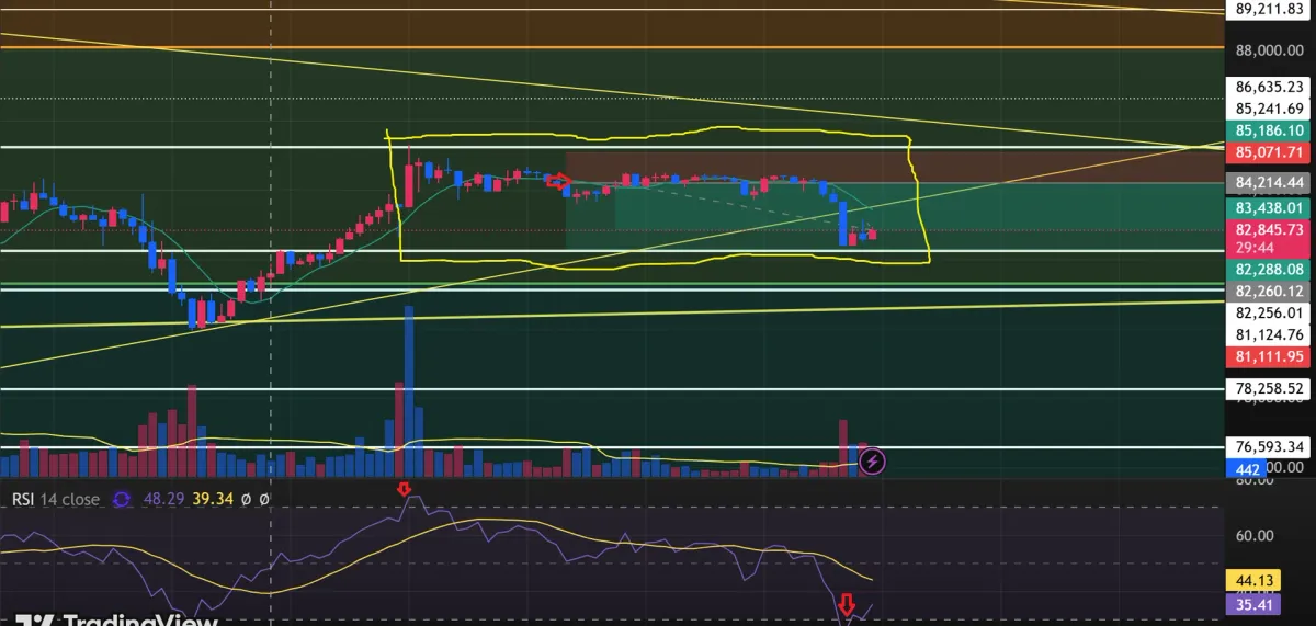 진입 가격 : 84293 , 목표가 : 82600, 손절가 : 85071