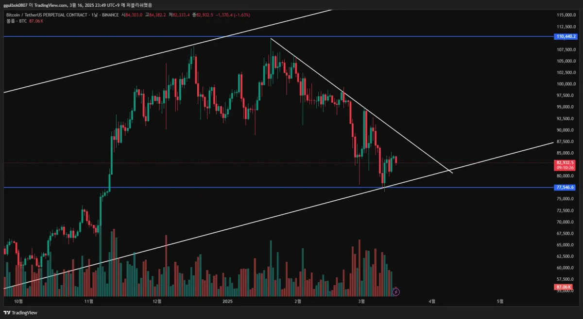 비트코인 날봉차트 2023년~2025년 3월까지 차트 작도를 해보이니
