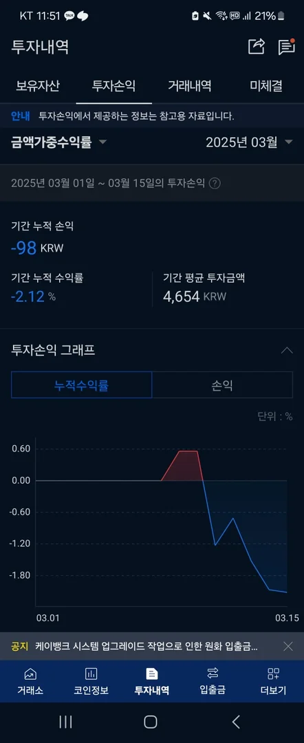 상승추세선을 그리고 있어 매수했는데, 하락 수세선을 타기 시작해 매도했습니다.