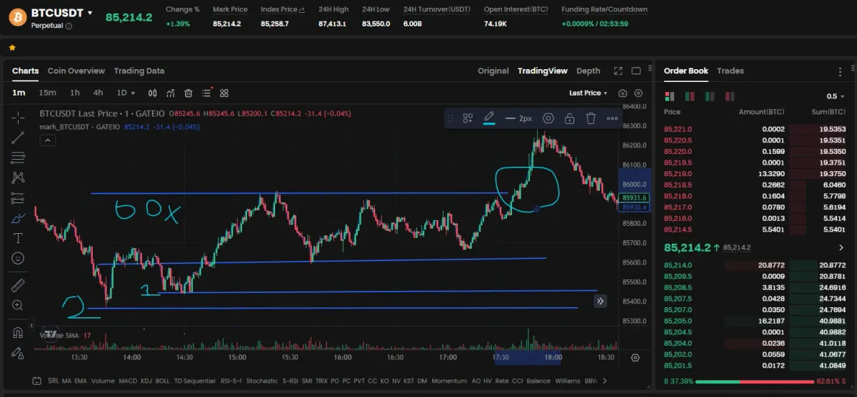 현재 박스권에서 2차 1차 지지선이 존재하고 결국 횡보하다가 위를 뚫어주어 저항선이 지지선이 되는모습입니다.