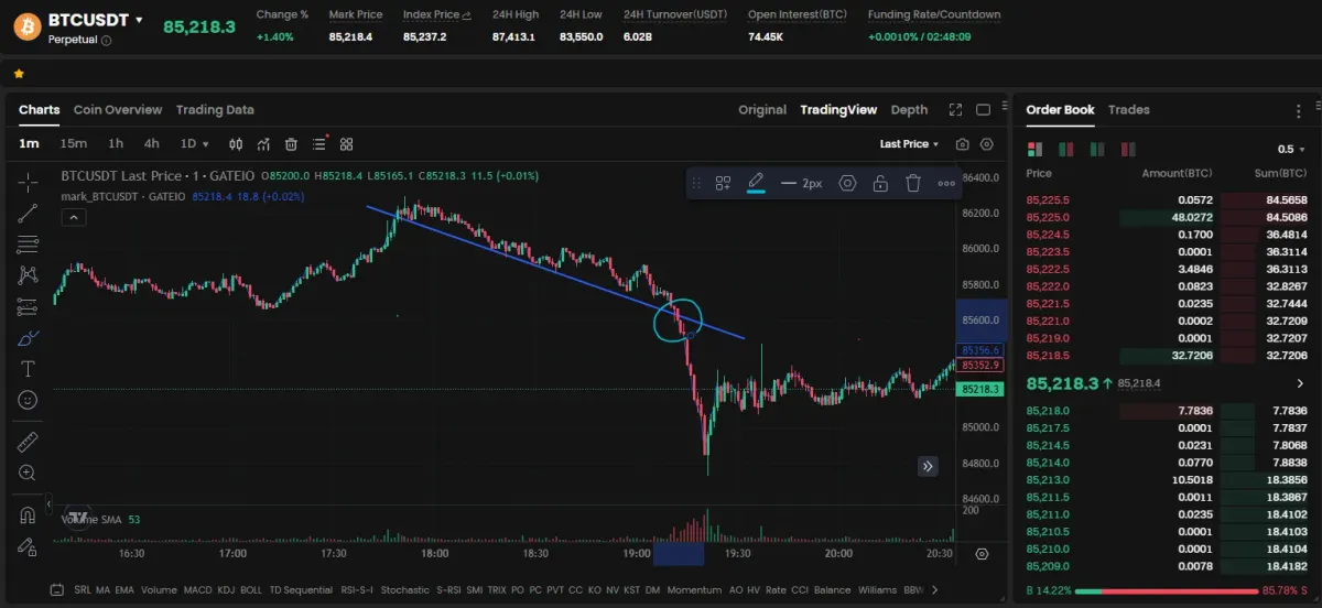 상승 추세선 안에서 결국 아래선을 뚫어주어 상승이 끝나고 하락으로 추세가 변경되었습니다.