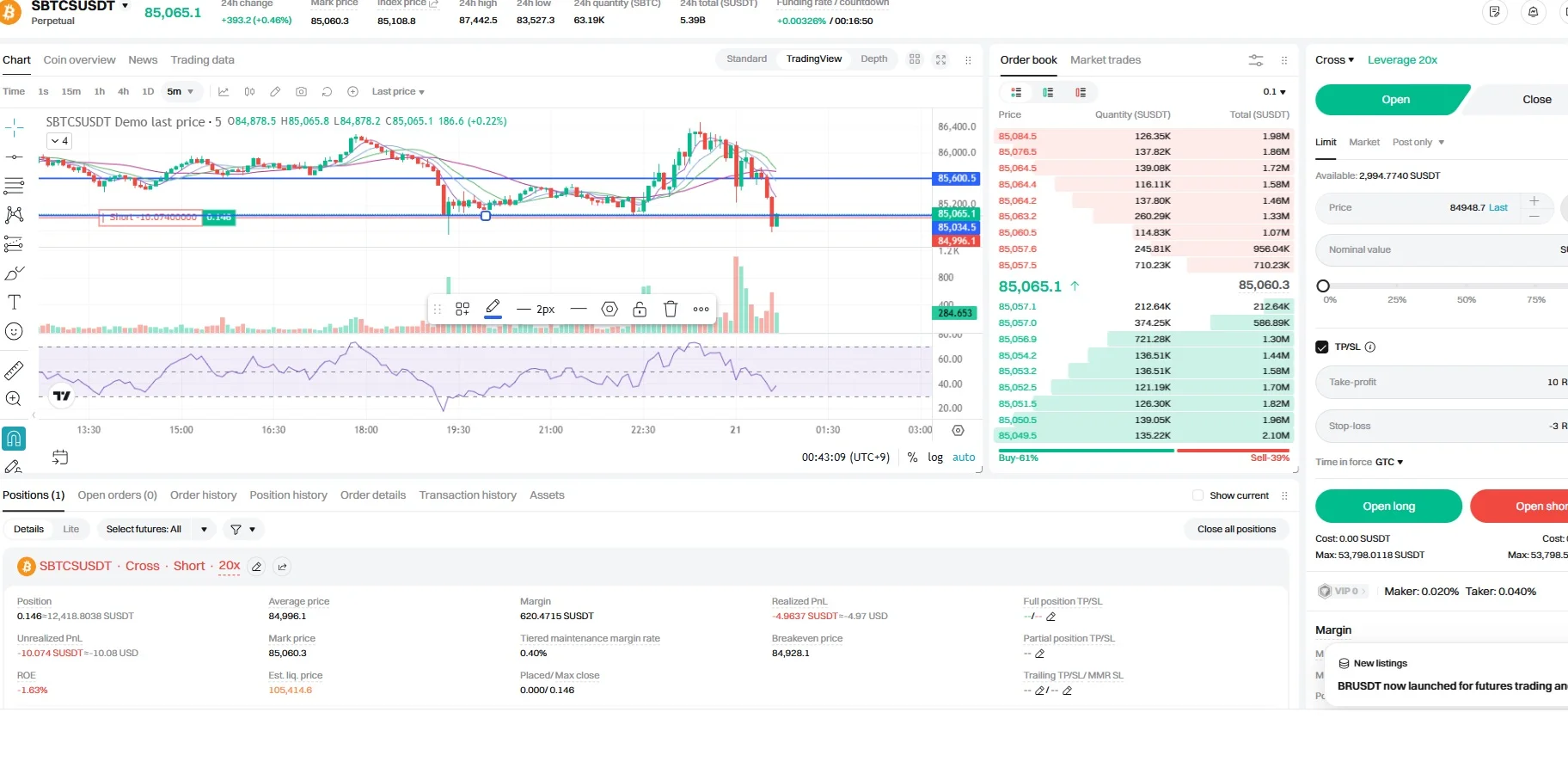 5분봉상 지지 저항 설정 후 저항 받는다 싶어 숏 진입했습니다.