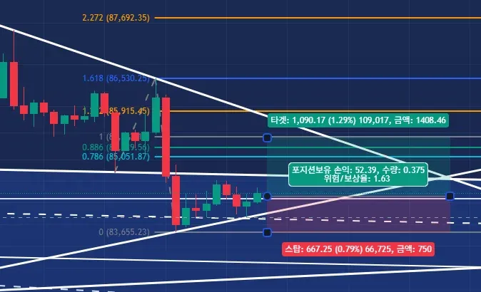 TP : 1차: 85.4 (추세기반 1) 2차 : 85.9(추세기반 피보나치1.272)