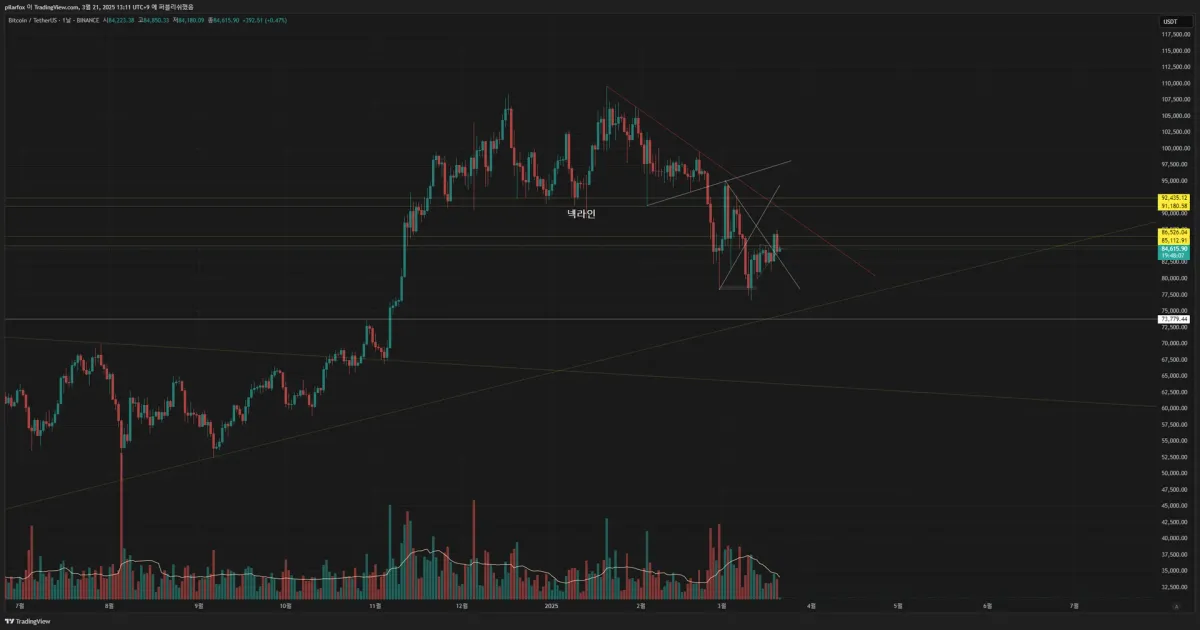 • 회색: 단기 하락 추세선 → 최근 돌파 시도