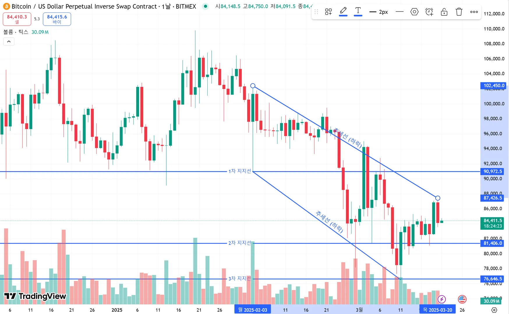 추가적으로 궁금한게 있는데 그럼 일단 현재 뉴스들을 포함해서 종합적으로 고려해봤을 때 추세선을 이벤트들을 기점으로 가격에 영향을 받은 기준으로 같은 일시의 캔들 꼬리와 머리를 기준으로 캔들을 그리면 되나요? 그리고 이렇게 하락을 했는데 2차 지지선을 뚫고 반등을 했으니 1차 지지선에서 매수 판단을 하면 공격적인 투자를 하는 것이 되겠지요?