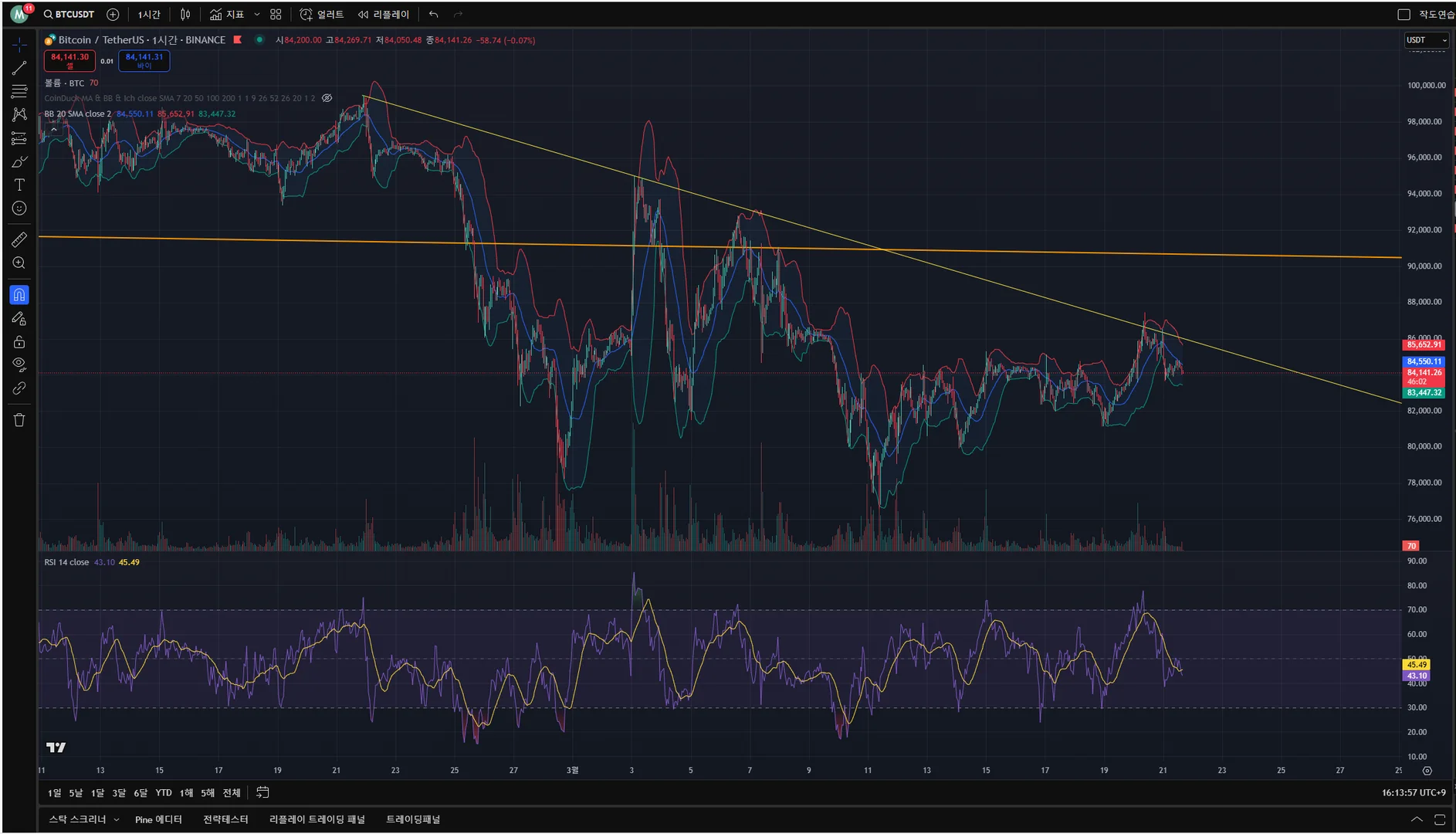 RSI와 볼린저밴드 까지 추가한 차트 미션 인증 합니다~