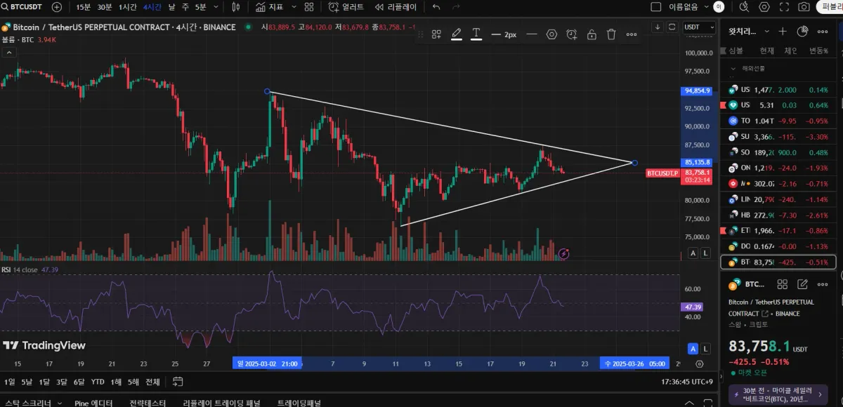 4시간봉 비트코인 추세선 작도해 보았습니다. 맞는지 모르겠네요.^^
