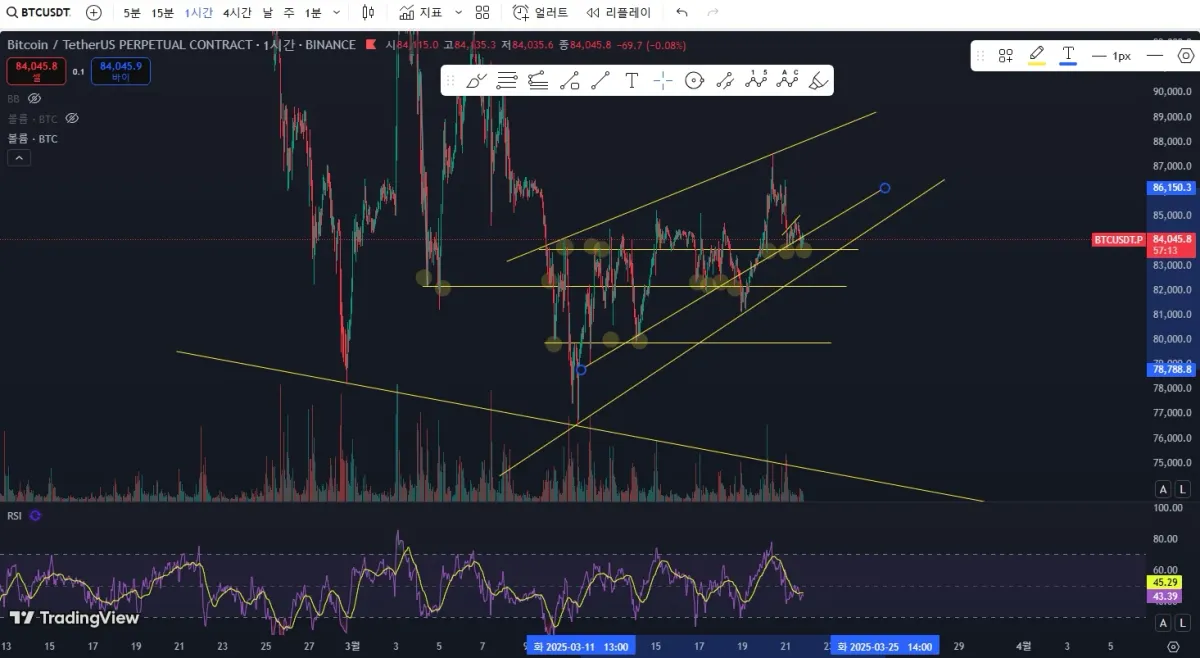 하락중이라 숏 매매 진행중인데 어디에서 지지받을지를 예상해 볼 수 있었습니다.