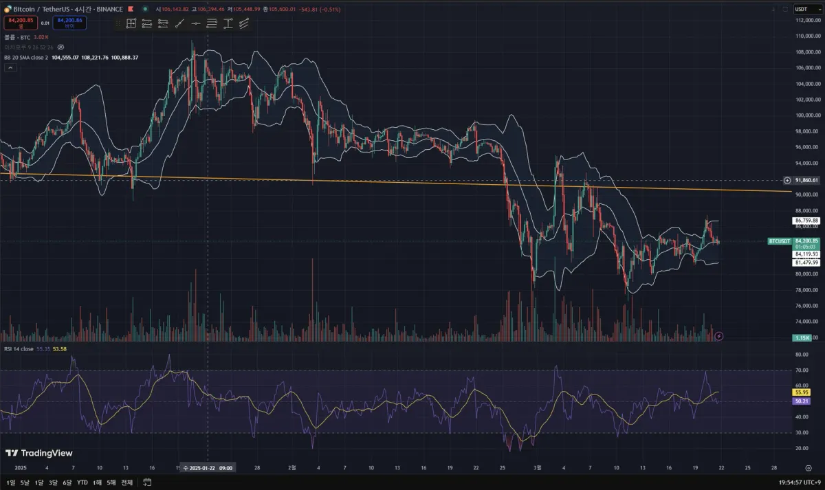 rsi 와 볼린저 밴드를 추가 하였습니다!