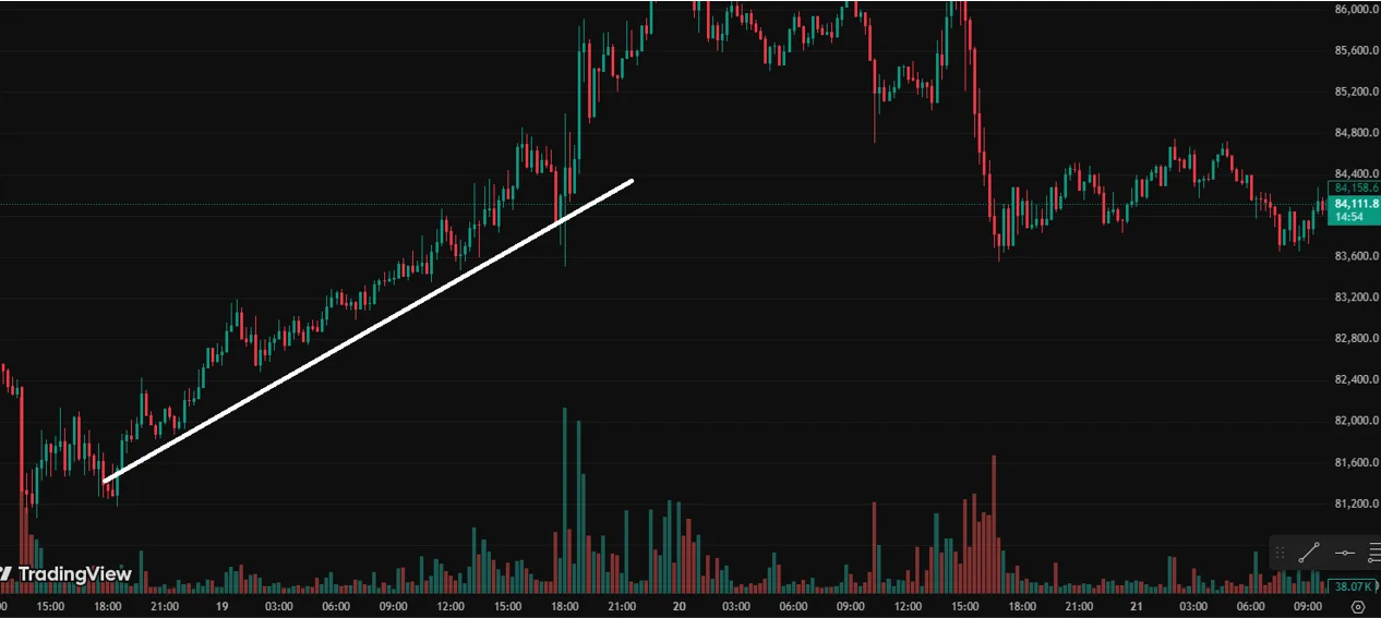 저도 1주차라 잘은 모르겠지만 가로줄로 84,800 부분을 지지/저항선을 그어도 될거 같아요. 그리고 그림에 있는 가장 높은 두 고점(87,500과 86,400)을 이어서 하향추세선으로 잡으셔도 될거 같아요. 추가로 83,600 부근에 가로줄로 지지선을 그으셔도 될거 같기도 해요