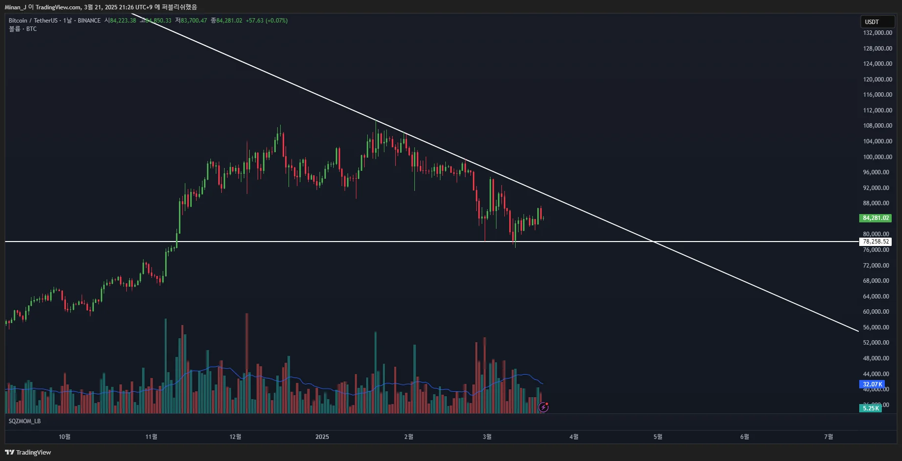 이대로 지지선을 지키며 추세선을 뚫는다면 상승을 기대해 봐도 좋을 것 같습니다.