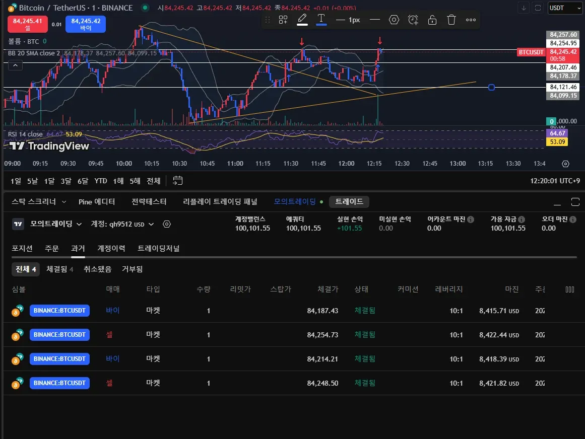 모의 트레이딩으로 수익을 났습니다... 아직 운이 좋아서 수익이 난 기분이네요 더욱 정진해 보도록 하겠습니다