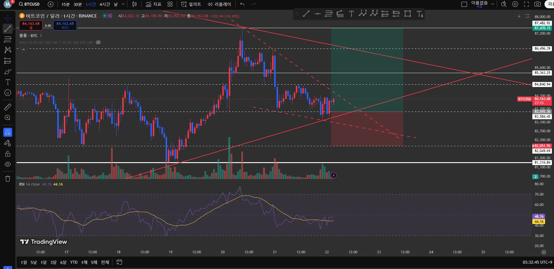 + RSI 매수세 약함, 거래량 감소하다가 증가, 짧은 시간대 등