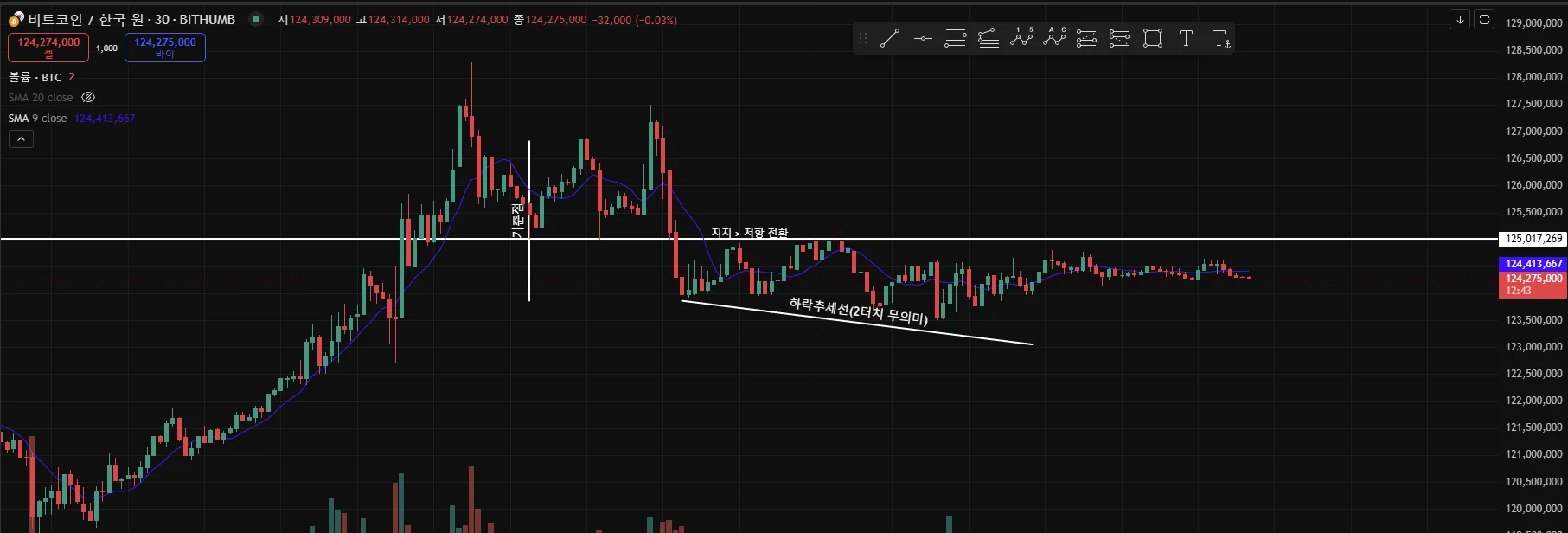 임의로 시작 기준점을 잡고 30분봉 기준으로 작도해보았습니다.