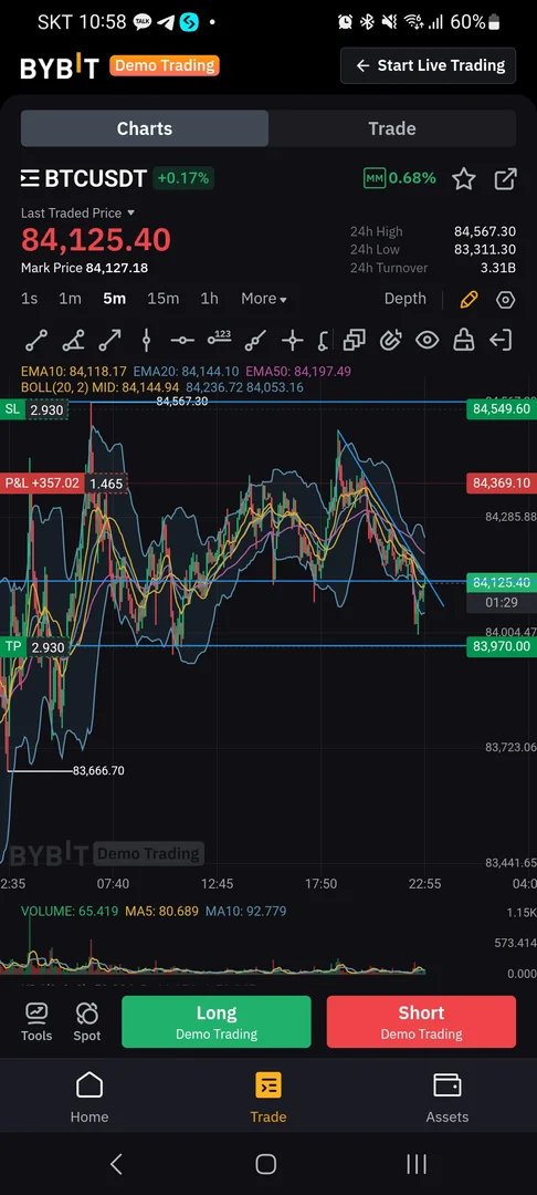 그리고 전전저점 83970을 완익으로 보고 진입했습니다.
