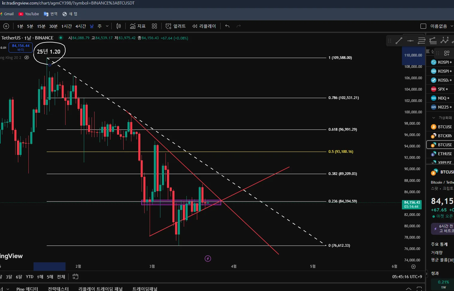따라서 올해 25년도 동일하게 382라인 조금 못미치는 87k~88k 부근까지 상승이후 강한 하락이 나올 것으로 예상됩니다.