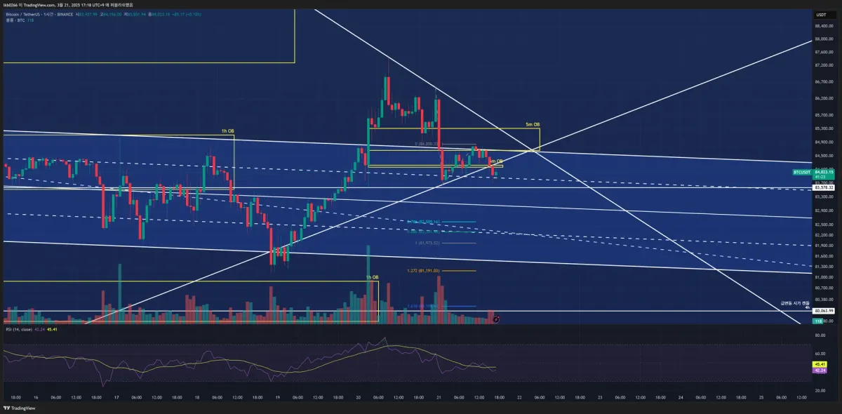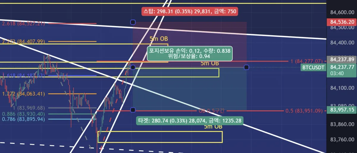 SL :84.5(추세기반 2.618 위, 5m OB 넘어서, 페러렐채널 상단 돌파)