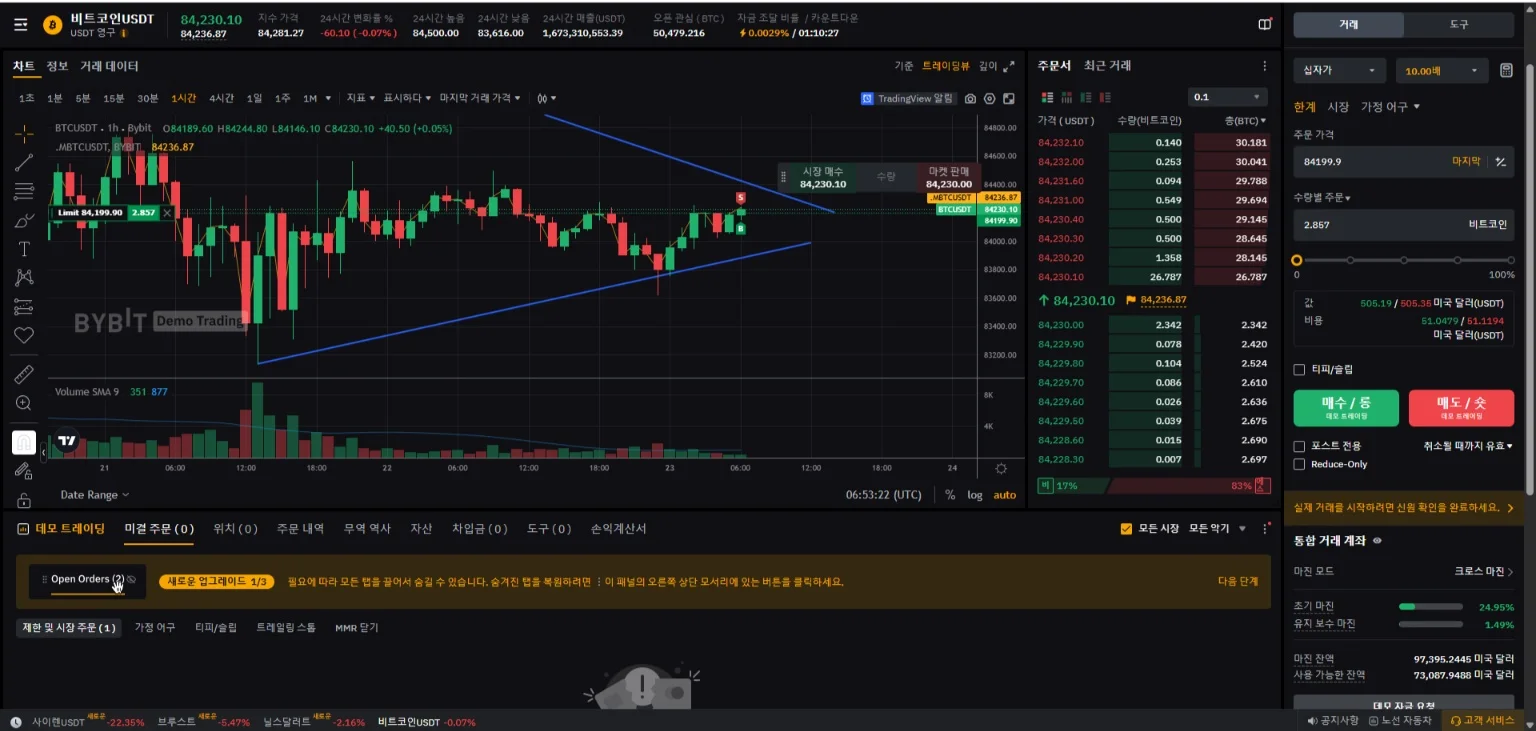 모의트레이딩이 처음이라 애 많이 먹었지만 그래도 작도 그어보고 나름대로 해봤습니다 롱으로 잡았습니다