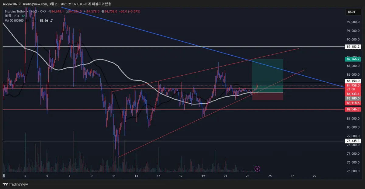 예상대로 흘러가 상승쐐기 나올시 숏으로 다시 진입 예정