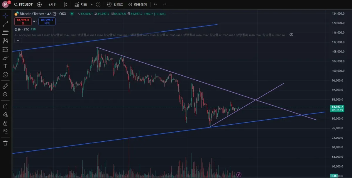 4시간봉 기준으로 작도해 보았습니다