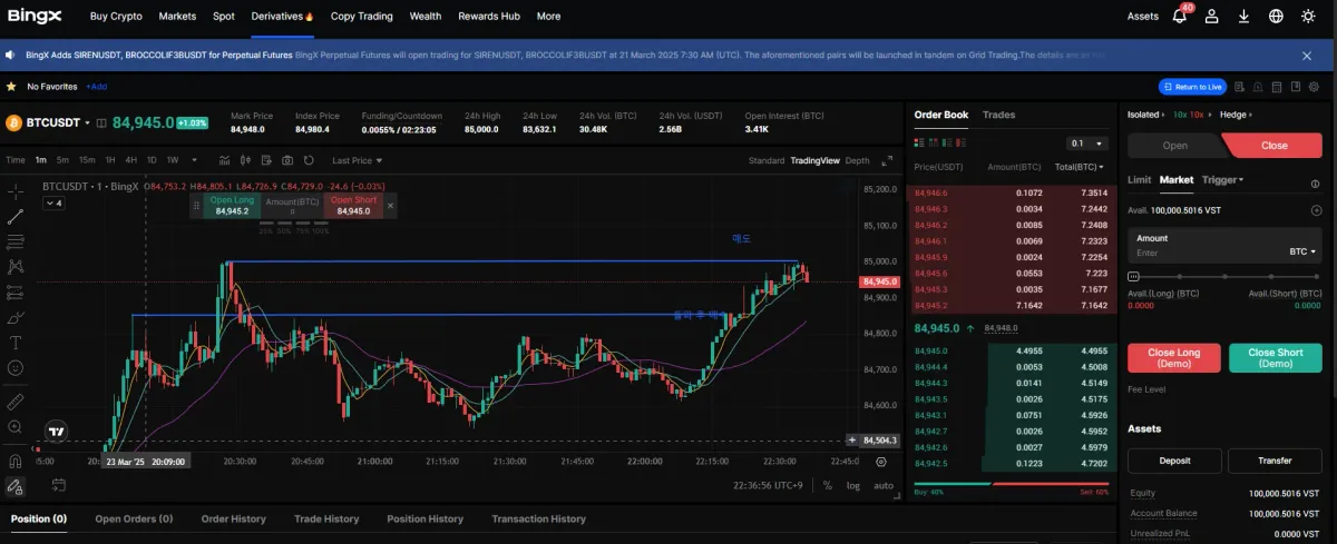 1분봉 매매 중 지지와 저항 라인으로만 데모트레이딩을 해보았습니다.