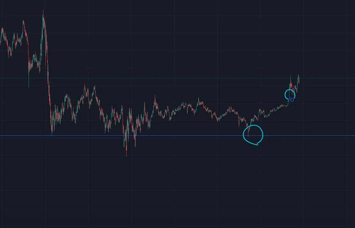 비슷한 저점을 터치하고 지지선을 형성하는 모습을 보고 진입. 슈팅 후 익절.