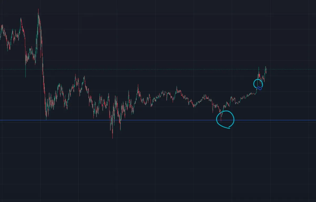 비슷한 저점을 터치하고 지지선을 형성하는 모습을 보고 진입. 슈팅 후 익절.