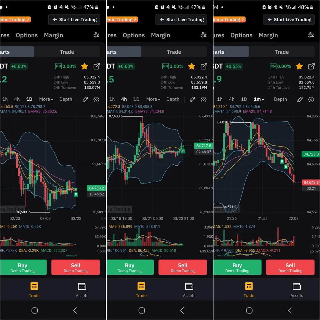 1️⃣차트상 한달, 4시간, 1시간에서 상승추세임을 확인