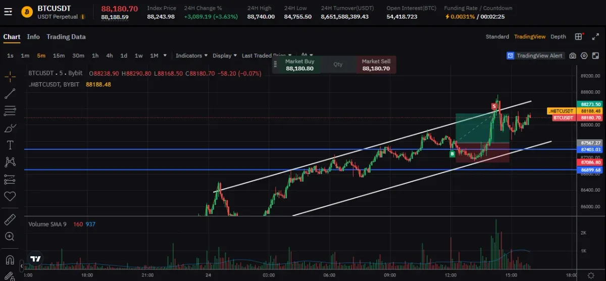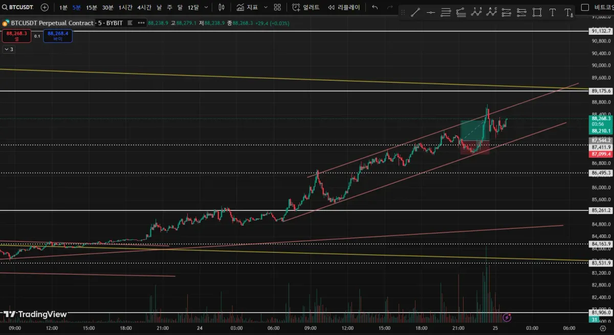 • 포지션 진입 : 87,503(채널 하단 부근의 이전 지지선)