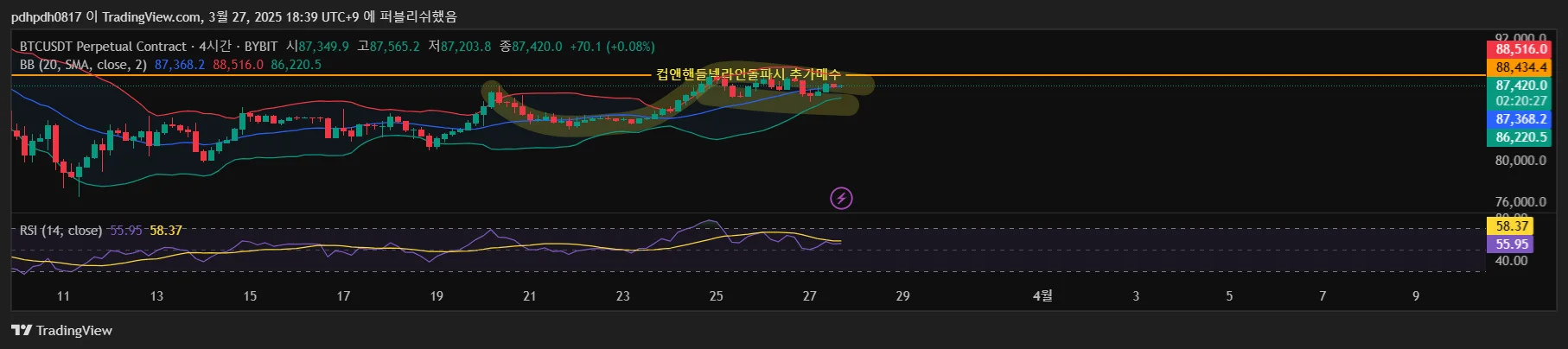 넥라인돌파시 전체시드 10배레버리지로 추가매수 할 예정입니다.