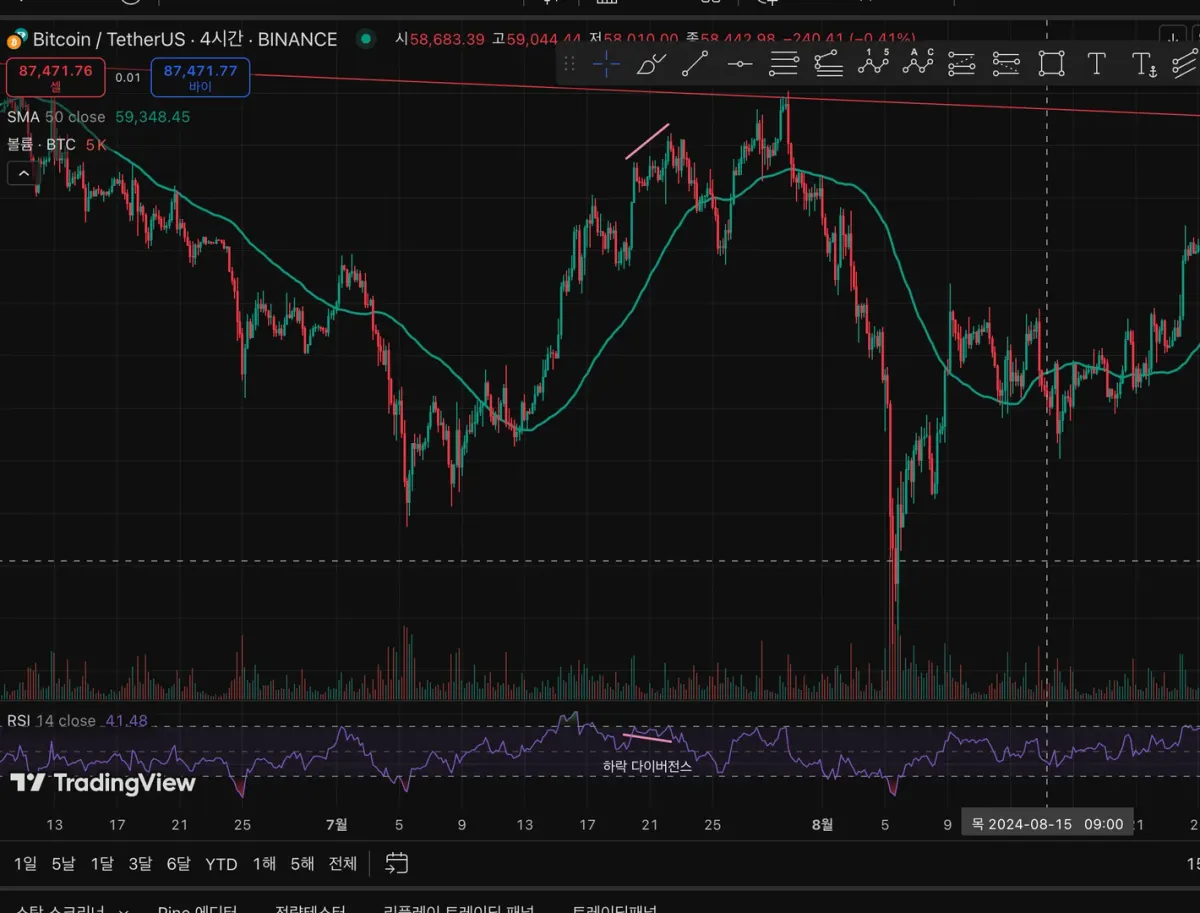 혹시나 해서 상승 다이버전스, 하락 다이버전스 찾아봤는데...