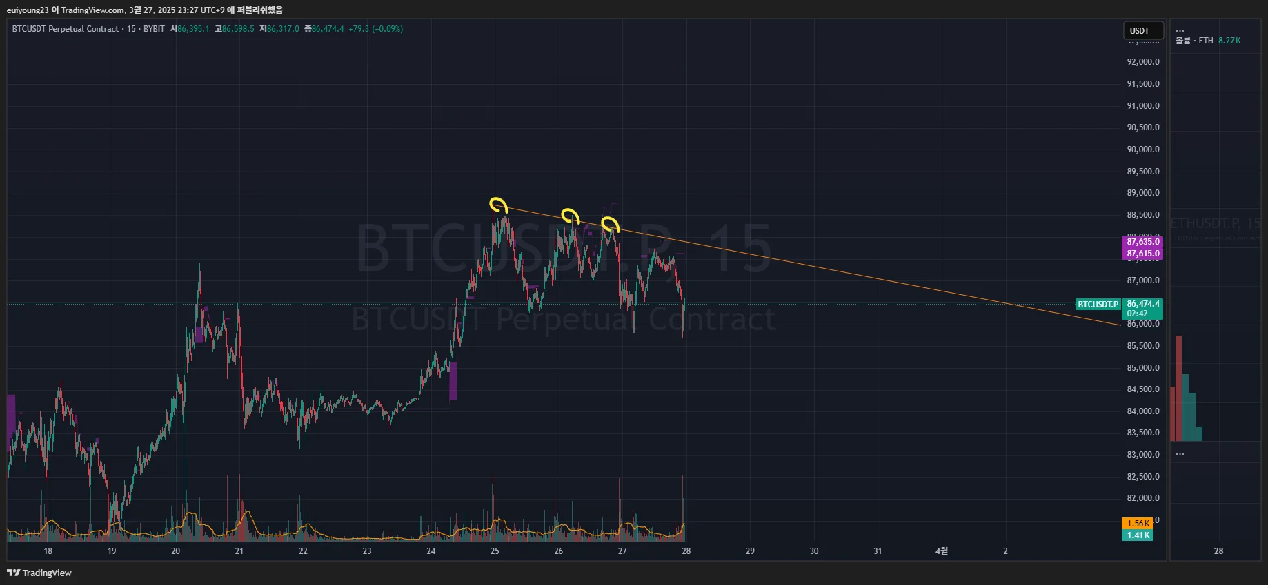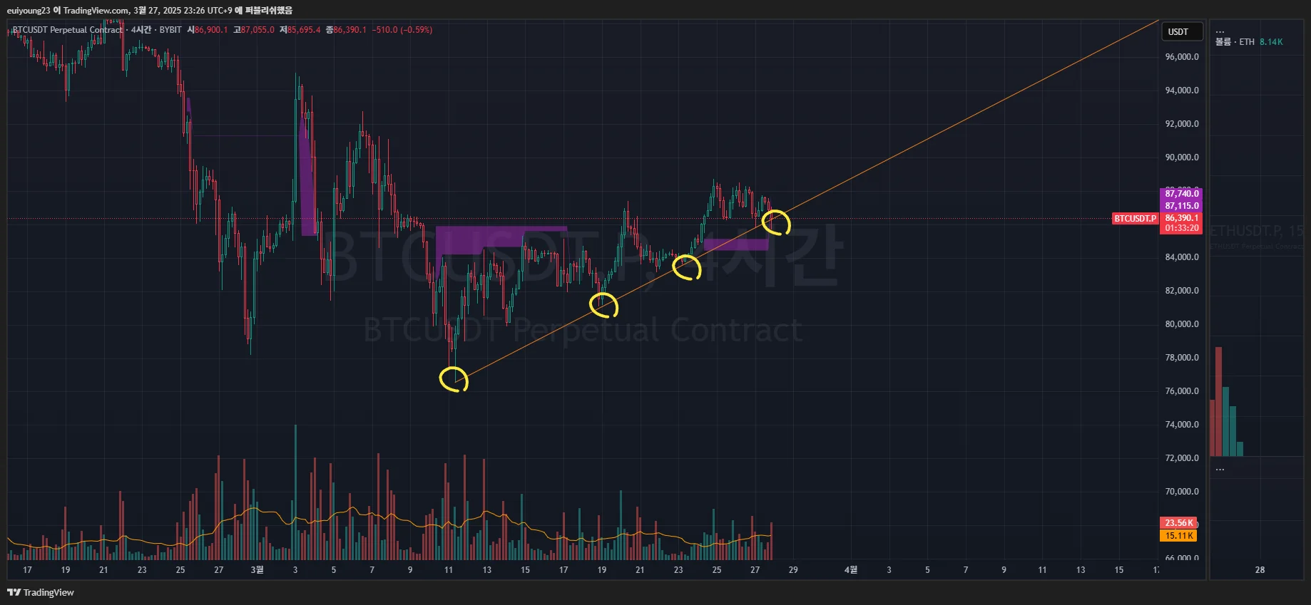 30일 챌린지[30일 챌린지 21기 1주차] 비트코인 일봉 차트 상 추세선