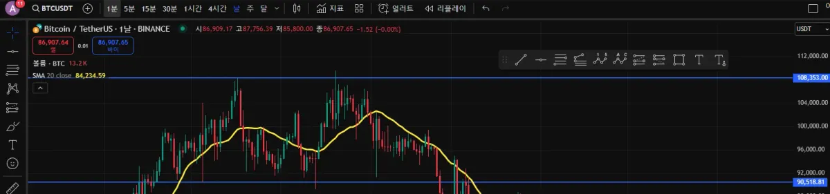 [30일 챌린지 21기 1주차] 비트코인 일봉 지지와 저항 추세선