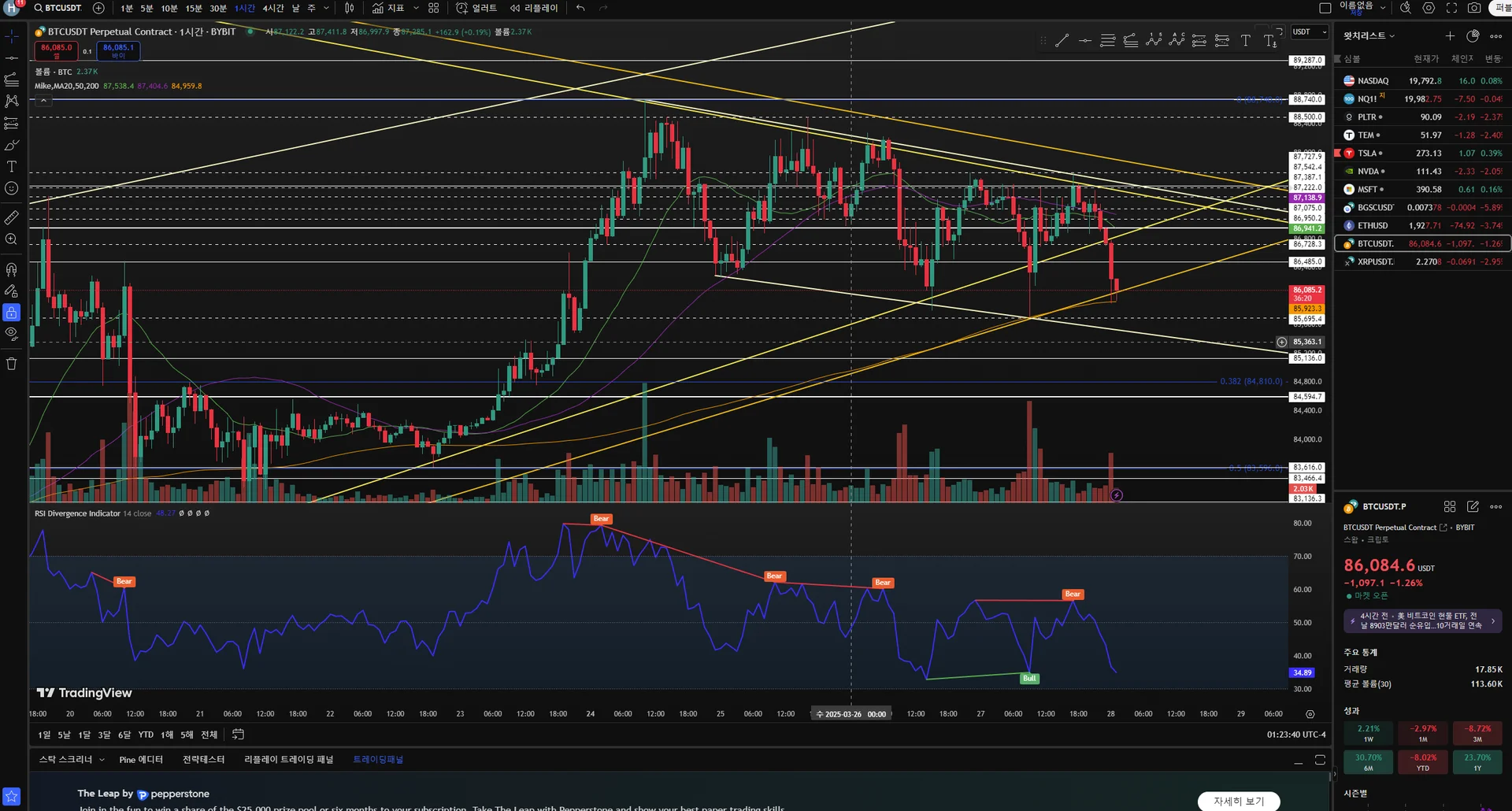 일봉, 4시간봉, 1시간봉에 지지저항 추세선 작도입니다.