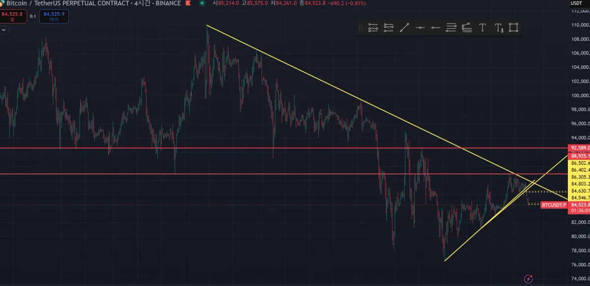 작성자비트코인 4시간봉 차트에 추세선 지지 저항선 작도 해봤습니다. 글이 안적어져서 댓글로 남깁니다.