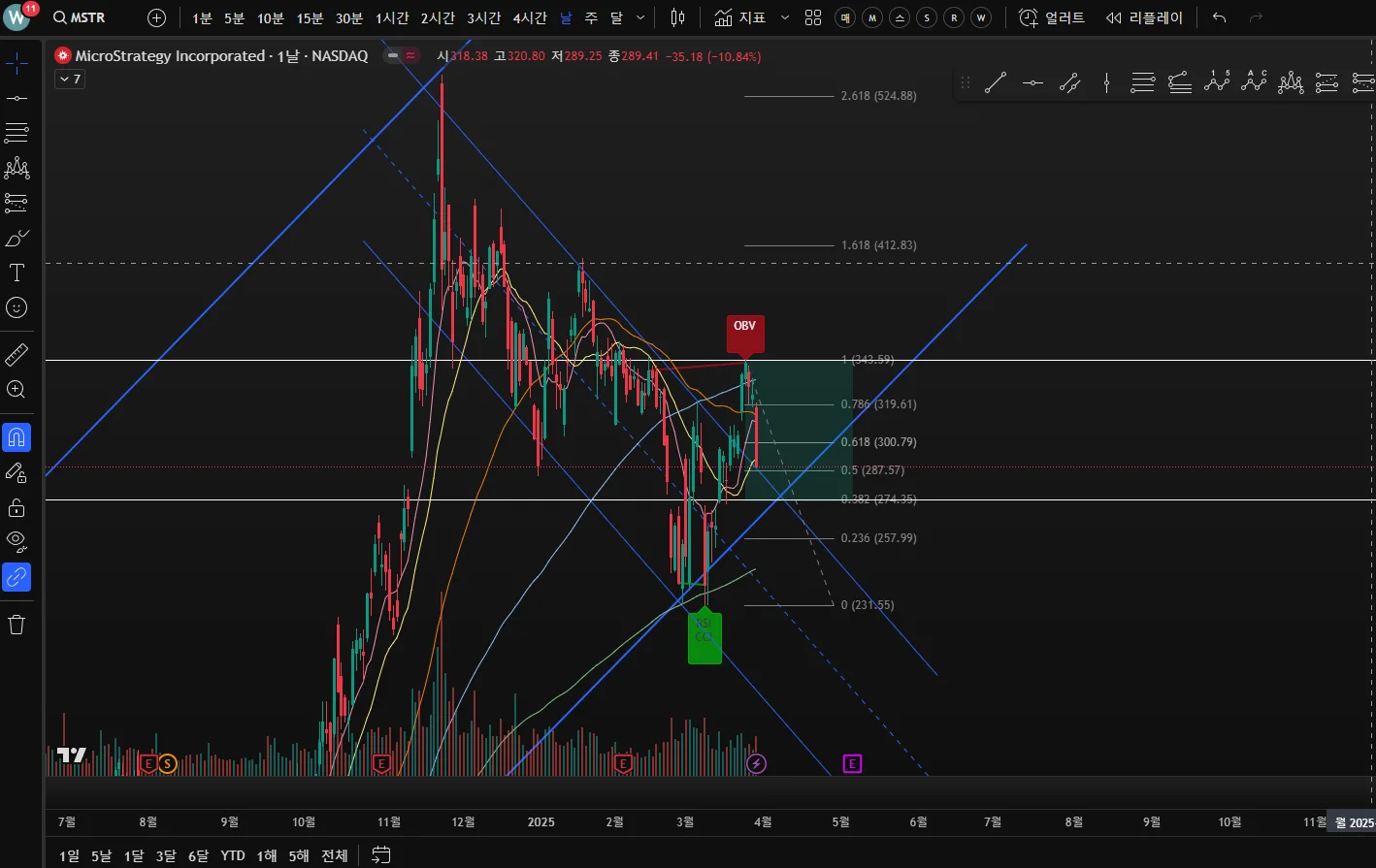 BTC 추종을 하는 MSTR을 작도 했습니다. (지금 제가 투자를 하는 종목이기도 해서요)
