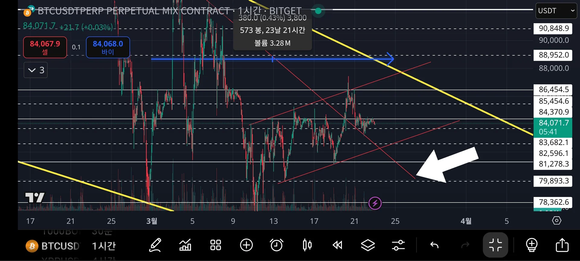 위에 표시한 것과 같이 해당 지지저항선들은 23일간 유의미한
