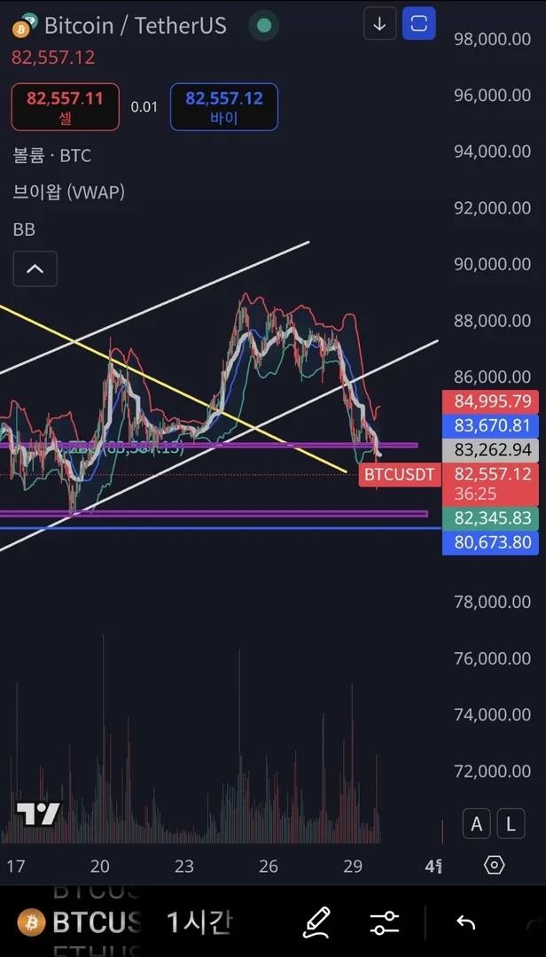 [30일 챌린지 21기 1주차] 지지 저항 및 추세선 작도(비트코인 4시간 봉 기준)