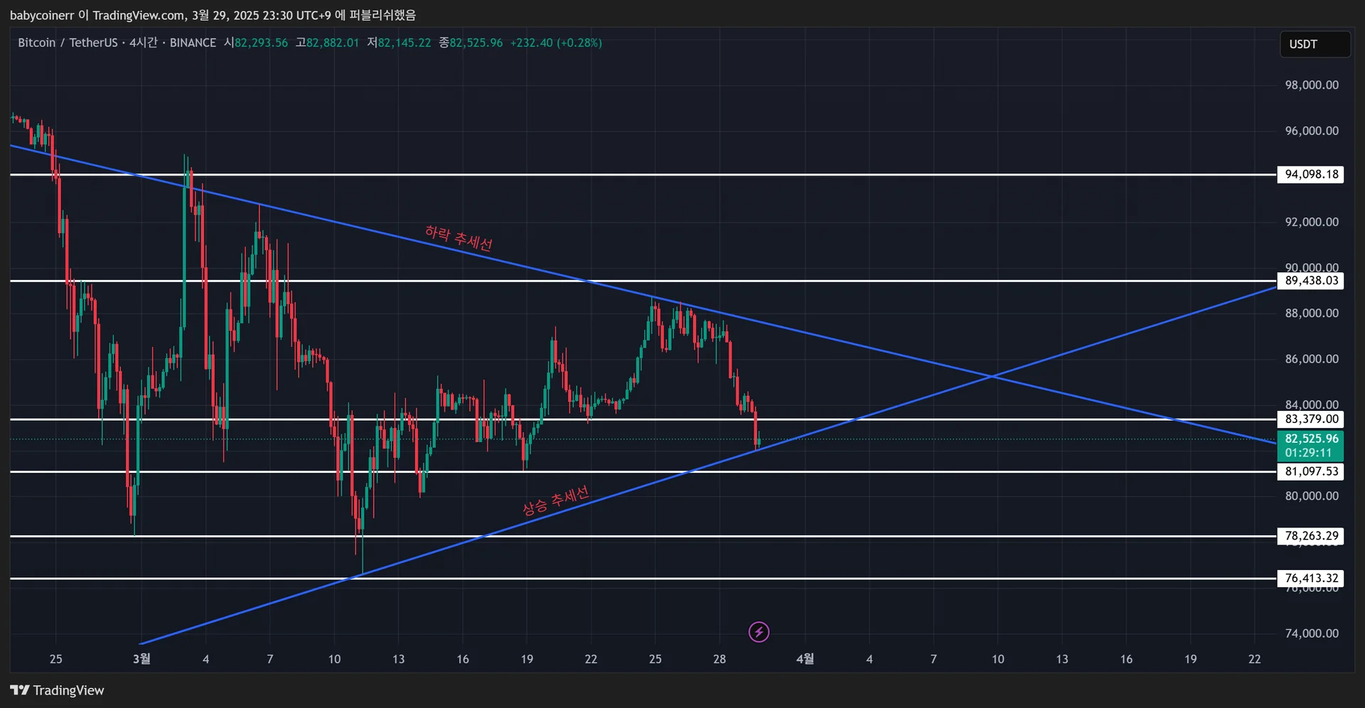 [30일 챌린지 21기 1주차] 지지 저항 및 추세선 작도(비트코인 4시간 봉 기준)