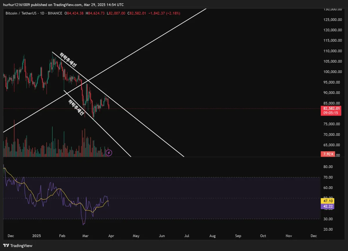 7일 챌린지[30일 챌린지 21기 1주차] 지지 저항 및 추세선 작도(비트코인 4시간 봉 기준)