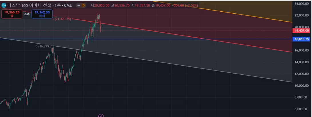 전 비트코인 차트는 다들 하셔서 연관된 나스닥 선물로 작성해봅니다