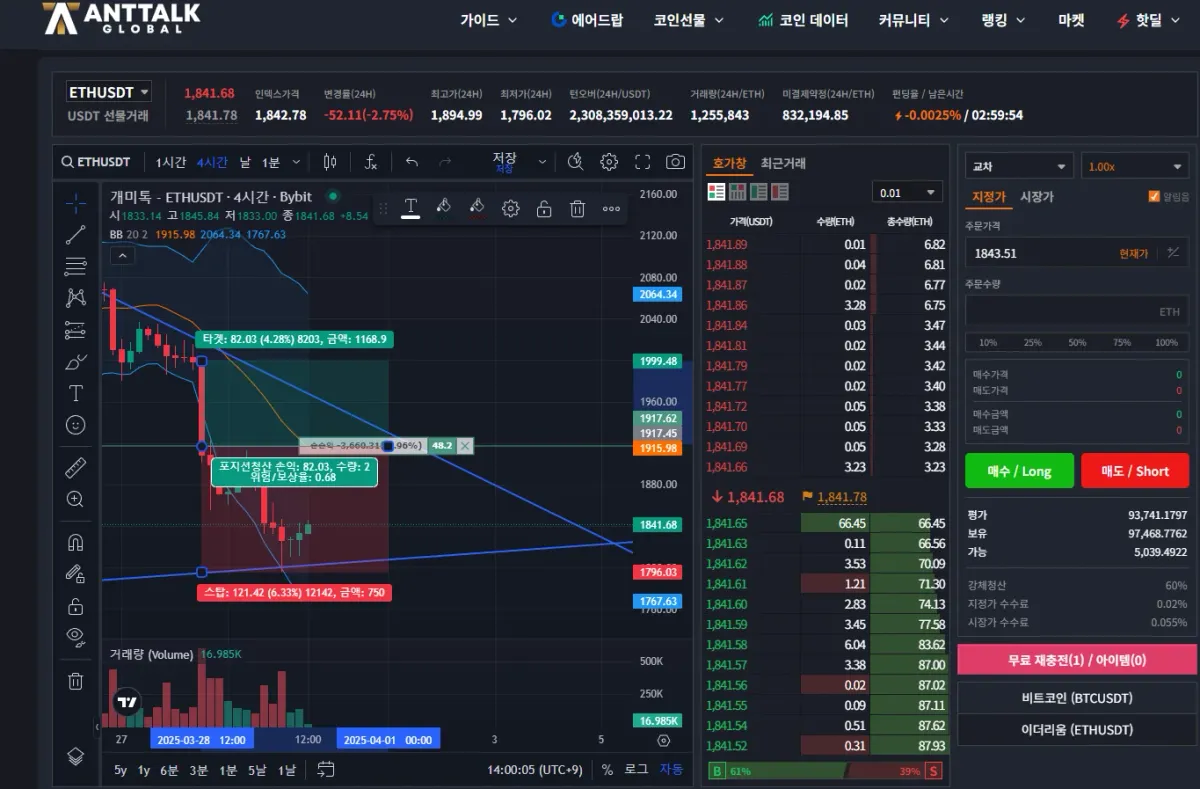 • 일일 기준으로 지지선과 저항을 긋고 매수포진션을 활용하여 손익을 확인 후 1917.62에 전량 매수