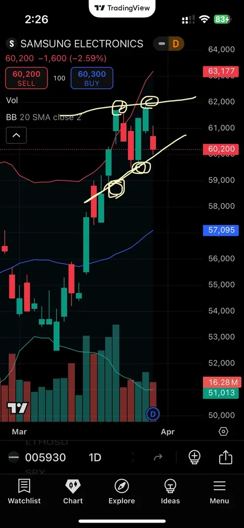 볼린저밴드 및 쌍봉 배운걸 바탕으로 해서 삼전 한주 더 추매 해보았습니다.! 일단은 아직 더 봐봐야할거 같아서 수익나면 인증 하겠습니다 ㅎㅎ