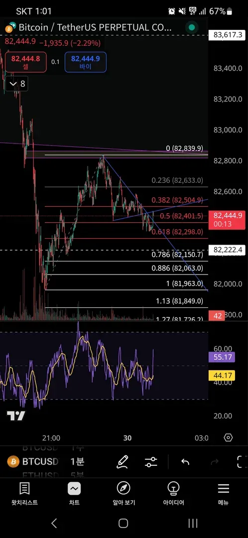 피보나치되돌림 구간 0.382 에서 수익 확정 진행 !