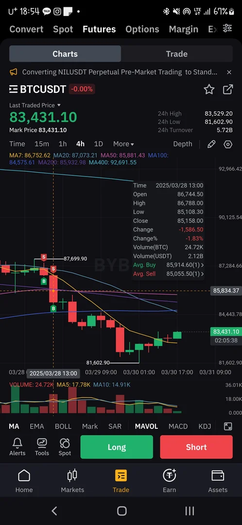 4시간봉에서 약간의 상승을 볼 수 있을 것이라 분석해서 롱으로 걸고서 10분 정도 지켜보려고 했는데
