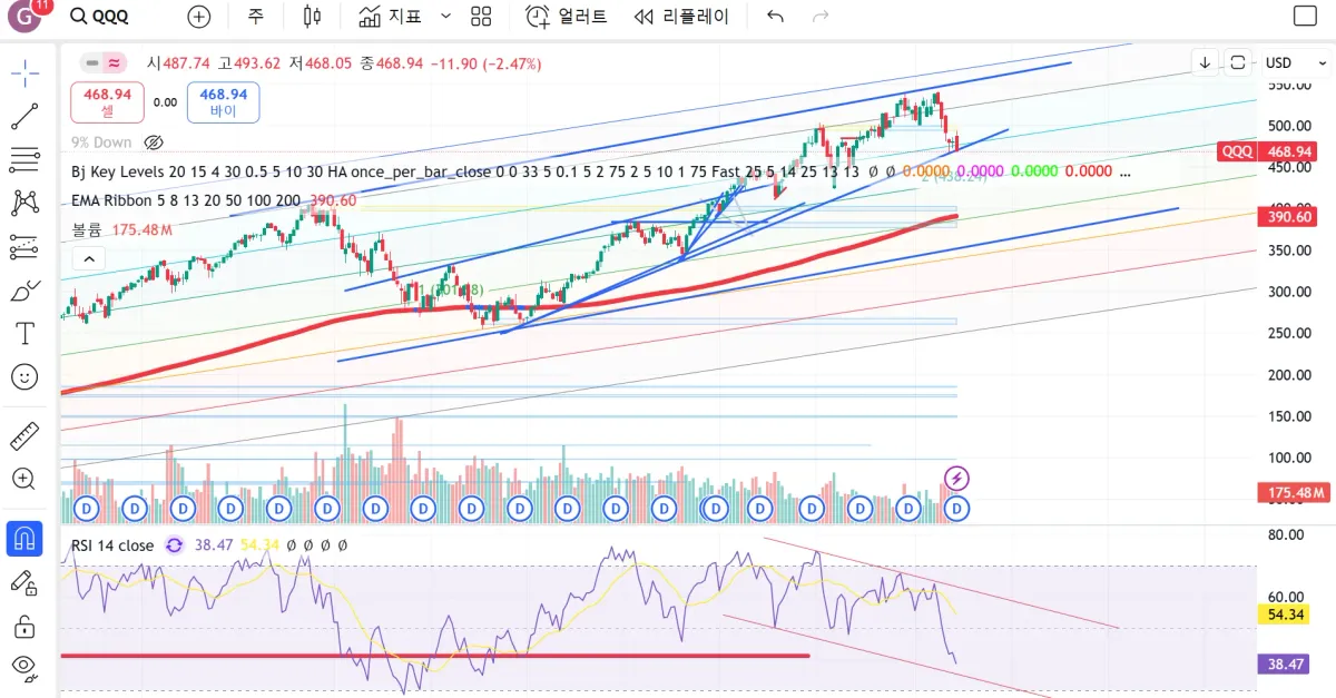 RSI에도 채널을 그려봤는데, 잘 먹힐지는 잘 모르겠습니다. ㅎ