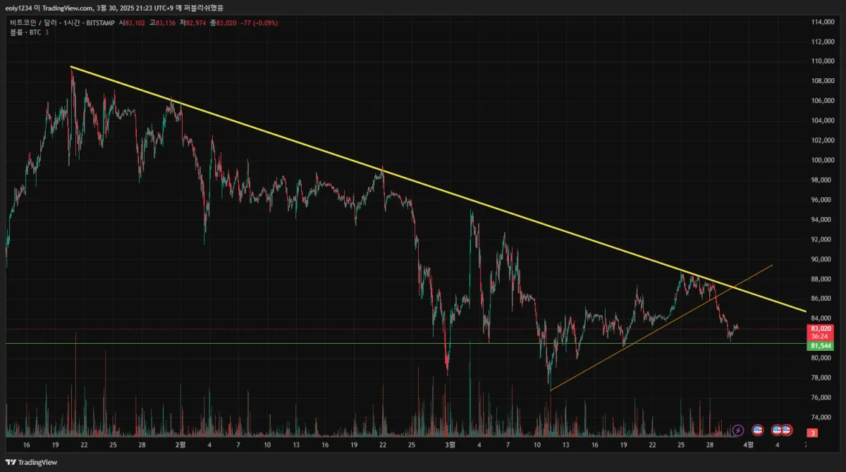 현재는 81500라인에서 반등중