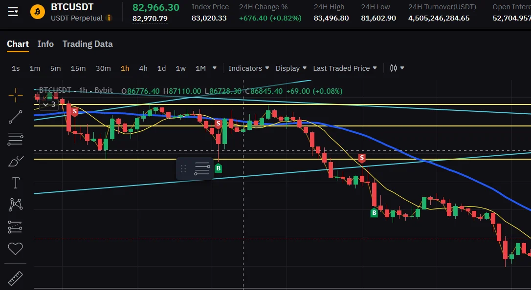 - 추세가 쭉 하방으로 이어져 수익권에 있었지만 불안한 마음에 생각했던 익절 자리였던 82~83K 부근이 아닌 곳에서 익절을 하였음. 또한 레버리지 10배로 하여 다음부터는 레버리지를 낮춰야겠다고 생각하였음