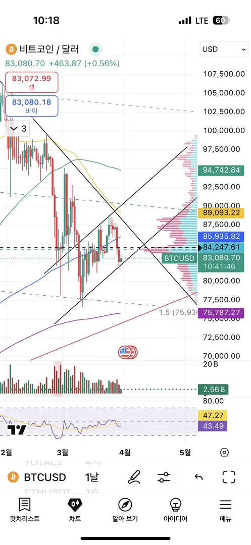 110k부터 이어온 하락 추세에 있다고 생각합니다.